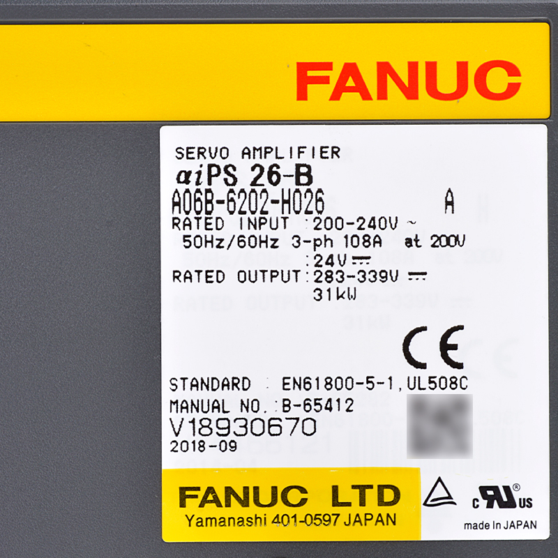 Fanuc Drive A06b - 6141 - H030 # H030 # H580 Fanuc Servo Servo Aips 26 - b ການສະຫນອງພະລັງງານ