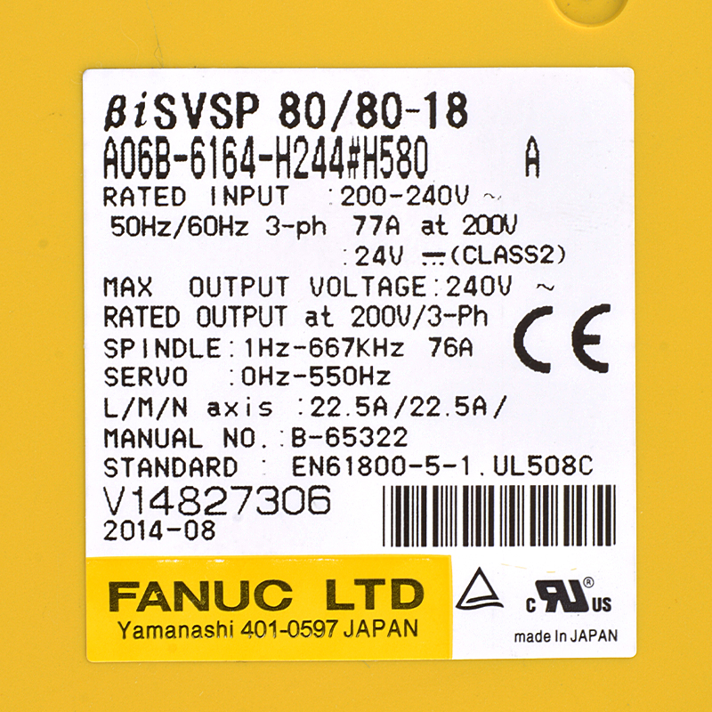 Fanuc Drive A06b - 6164 - H244 # H580 Fanuc BisvsG Bisvsp 80/80 - 18/80 -